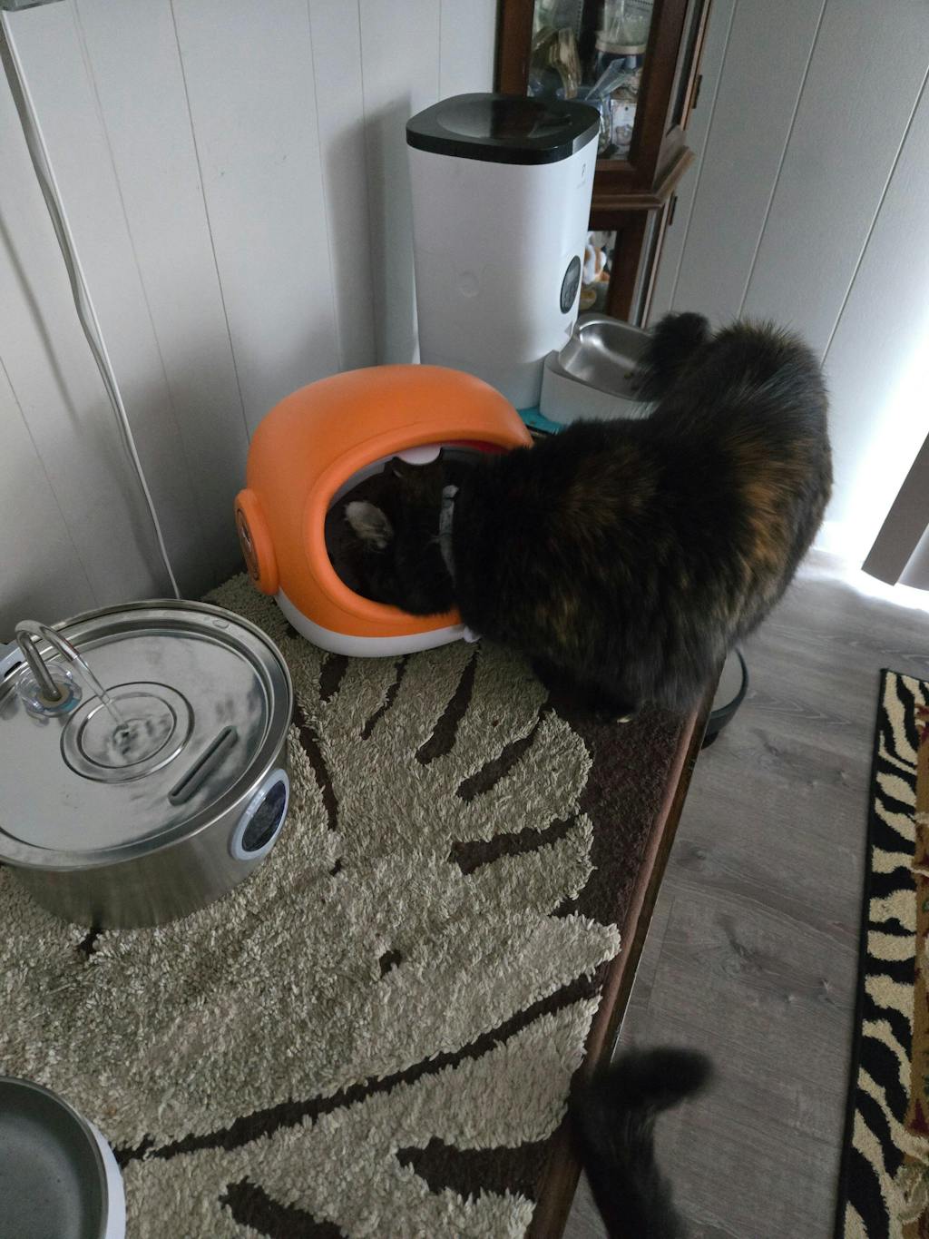 This feeder has been a total lifesaver. Setup was incredibly easy—just a few minutes, and it was ready to go. The RFID tag works perfectly: the feeder recognizes Kitty every time and opens just for him. It’s like magic! Now he can eat when he wants, as slowly as he wants, without having to compete with anyone. For the first time in ages, he's not hungry all the time. He gets to be himself again—our calm, grazing boy.